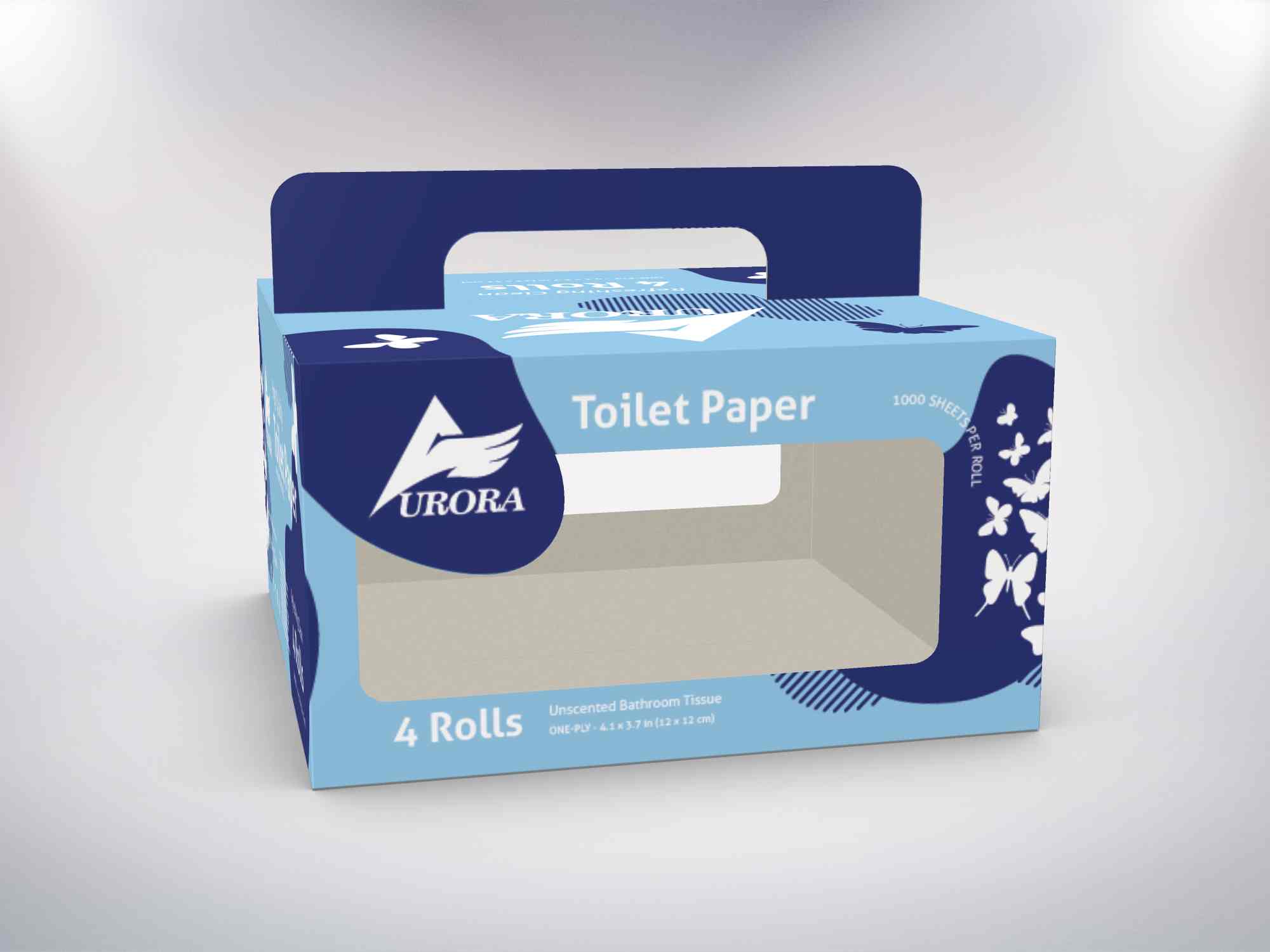 Project Overview: Aurora Toilet Paper Pack of 4 Packaging Design